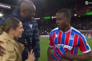 體育資訊4月10日訊 歐協聯1/4決賽首回合,水晶宮以3-0的比分完勝佛羅倫薩。本場比賽,28歲前鋒馬特塔為球隊首開紀錄,這是他自轉會米蘭失敗后首次取得進球。賽后,馬特塔在接受TNT體育記者奧利維亞·布扎格洛(Olivia Buzaglo)采訪時,一直將手臂搭在她的肩膀上,引起了球迷們的熱議。在采訪現場,布扎格洛開玩笑道:“我們都在這里有個小小的擁抱。”