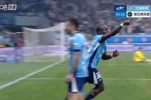 體育資訊04月10日訊 中超第5輪,大連英博vs浙江。比賽第62分鐘,大連英博2-0擴大領先!阿奇姆彭半單刀推射遠角破門。