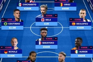 中場(chǎng):庫(kù)蒂尼奧(250萬(wàn))、阿里(100萬(wàn))、巴卡約科(50萬(wàn))、德烏洛費(fèi)烏(20萬(wàn))