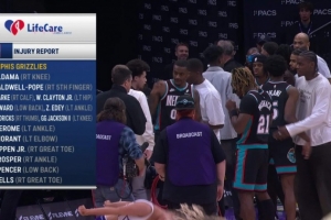 灰熊VS爵士,轉播方給出灰熊傷病名單,多達14人,分別是: