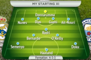 體育資訊3月11日訊 歐冠1/8決賽首回合,皇馬主場對陣曼城,《曼徹斯特晚報》賽前預測雙方首發,哈蘭德對決維尼修斯,阿諾德、羅德里出戰。