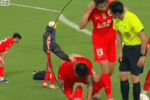 在查看楊世元的情況時,魏震示意楊世元頭部受傷,主裁李海新忍不住笑了出來。