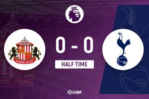 半場結束,桑德蘭0-0熱刺。