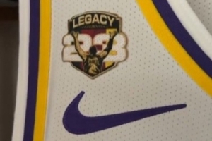 詹姆斯本場(chǎng)比賽的球衣有特殊補(bǔ)丁,印有23、legacy(傳奇性、傳承)的字樣,還有詹姆斯經(jīng)典撒鎂粉的背影。
