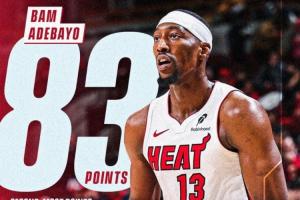 體育資訊03月12日訊 熱火主場150-129大勝奇才,阿德巴約狂轟83分創歷史單場第二高分。