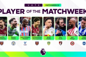 體育資訊4月14日訊 英超第32輪戰(zhàn)罷,英超官方也評選出本輪比賽最佳球員候選名單,具體如下: