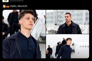 皇馬球員們已經抵達慕尼黑,準備參加這場重要比賽,官方社媒曬出球員們的照片,德語配文:“你好,慕尼黑!”