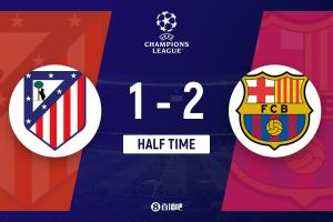 半場結束,巴薩暫2-1馬競。