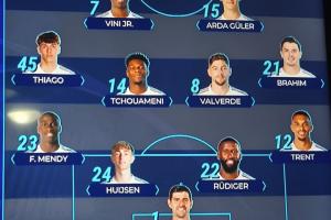 體育資訊03月12日訊 皇馬官方公布了對陣曼城的首發,皇馬tv給出的陣型是442,維尼修斯、居萊爾搭檔鋒線。