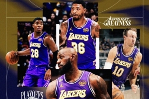 值得一提的是,在這張湖人官方活動(dòng)宣傳海報(bào)中亮相的四位球員為詹姆斯、斯瑪特、八村塁、肯納德,并無兩位傷員東契奇和里夫斯的身影。