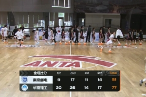 末節大比分領先之后華南理工主做防守,雖然沒能像前三節那樣壓制對手但場面部落下風,優勢一直維持在20分以上不給對手任何機會。最終,華南理工77-51大勝南京郵電大學拿下比賽。