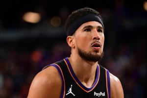 本場(chǎng)比賽太陽(yáng)在罰球線上32罰23中,罰丟了9個(gè)球,最后只輸了4分。其中主將德文·布克罕見罰丟5個(gè)。