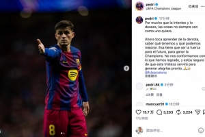 體育資訊4月15日訊 歐冠1/4決賽次回合,巴薩客場2比1擊敗馬競,最終以總比分2-3出局。賽后,佩德里更新社媒感嘆世事并非總能如愿。