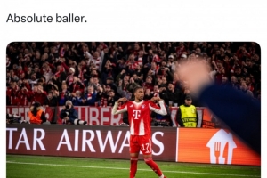 拜仁官推賽后曬出了奧利塞向球迷展示球衣的慶祝照,并配文寫道:絕對球星級表現。