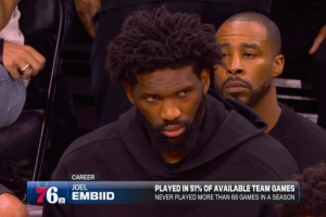 太脆了!恩比德生涯出勤率僅51% 單賽季出戰(zhàn)場次從未超過68場