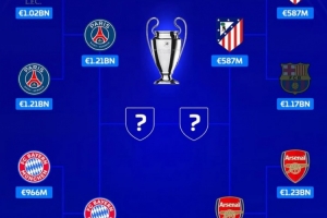 體育資訊4月16日訊 歐冠八強戰已經全部結束,四強對陣也已經出爐。《轉會市場》也列出了歐冠四強的總身價: