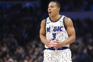 體育資訊4月16日訊 NBA附加賽,魔術上半場以55-59落后76人。