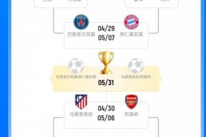 歐冠四強中,上半區的巴黎2次進歐冠決賽1冠1亞,拜仁11次進決賽6冠5亞,下半區的馬競3次進決賽0冠3亞,阿森納1次進決賽0冠1亞。
