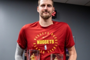 本賽季,約基奇出戰65場比賽,場均27.7分12.9籃板10.7助攻1.4搶斷。他的場均籃板和助攻皆是聯盟第一,是NBA歷史做到的球員。