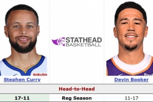 據(jù)統(tǒng)計,庫里生涯面對布克17勝11負,場均26.4分5.5籃板5.6助攻1.1搶斷,布克場均24.1分3.3籃板5.6助攻1.2搶斷。
