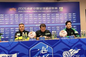 體育資訊04月16日訊 中超第6輪浙江vs北京國安賽前,浙江隊主帥阿洛伊西攜隊員錢杰給出席賽前發布會。