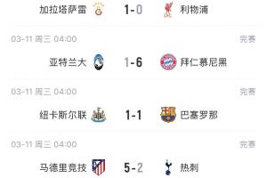 體育資訊03月12日訊 歐冠1/8決賽首回合比賽結(jié)束,種子隊只有拜仁客場取勝。