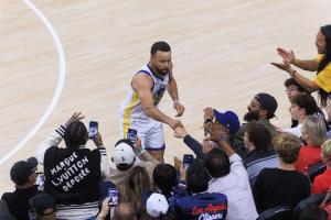 對手歸對手!還是Respect!快船球迷臉色鐵青推開庫里 但碰拳收尾