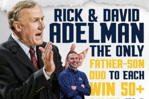 據統計,大衛·阿德爾曼和里克·阿德爾曼成為歷史首對均帶隊50+勝的父子教練組合。
