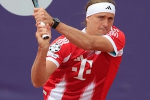 體育資訊4月17日訊 世界排名第三的ATP網球選手、拜仁球迷亞歷山大·茲維列夫在今日出戰慕尼黑公開賽時,身穿了一件奧利塞的拜仁球衣。