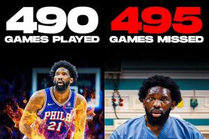 美媒ClutchPoints表示,恩比德NBA生涯至今缺席的場次比出戰的場次還多: