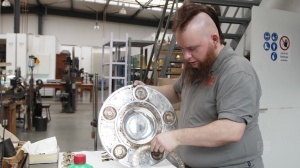 德甲“沙拉盤”于1981年首次擴(kuò)容,空間足以滿足未來(lái)30年的需求。如今,獎(jiǎng)杯重達(dá)11公斤,直徑56厘米。新的外環(huán)現(xiàn)在總共包含五條刻名軌道,比之前增加了兩條。