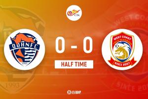 半場結束,青島海牛0-0青島西海岸。