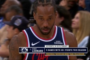 (此前,倫納德最多單賽季僅拿到2次40+)