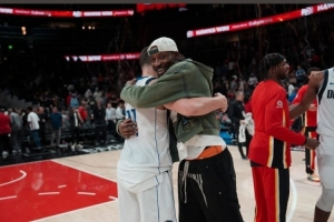 賽后,庫明加曬出了與克萊擁抱的照片,并寫道:“我的兄弟。”