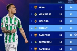 體育資訊3月12日訊 德轉盤點了本賽季西甲邊鋒位置球員在聯賽中參與進球榜,其中亞馬爾居首,具體榜單如下(進球+助攻):