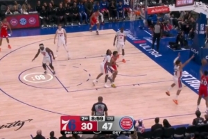 GIF-佩恩單打坎寧安,底角撤步高難度三分倒地命中
