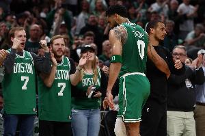 本場比賽,凱爾特人球星塔圖姆穩(wěn)定輸出,打了27分鐘16投6中,三分9中2、罰球7中6拿到20分3籃板2助攻,正負(fù)值-3。
