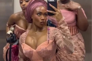 這位阿森納球星的女友在Instagram快拍中分享了多段婚禮當(dāng)天的視頻,慶祝這一美妙時刻。其中一張照片里,她與另外兩位賓客在電梯里自拍合影,三人均身著驚艷的粉色禮服。
