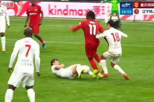 比賽第25分鐘,嚴(yán)鼎皓鏟球犯規(guī),馬寧出示黃牌。