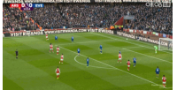 比賽第13分鐘,薩卡門前近在遲尺的頭球被皮克福德神勇?lián)涑觯S后邊裁舉旗示意薩卡越位在先。