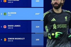 體育資訊3月15日訊 阿利松與利物浦正式完成續約,德轉也盤點了利物浦隊史門將球員在英超出場次數榜,具體如下: