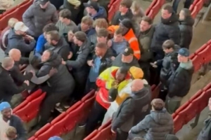 比賽結束后,埃弗頓球迷所在的看臺發生了混亂,埃弗頓球迷互相毆打。