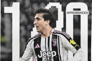 尤文官方也在社交媒體曬出海報,并配文寫道:“祝賀米雷蒂代表尤文圖斯出戰100場比賽。”