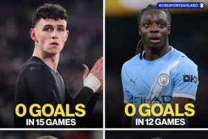 CBS社媒曬出曼城部分球員2026年的進球數量,藍月亮今年進攻端的表現難言出色。