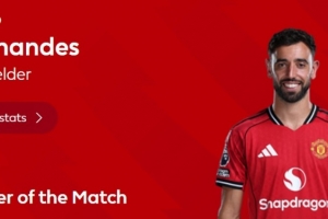 本場比賽B費首發出場,送出2次助攻,6次關鍵傳球,賽后當選英超官方球迷票選全場最佳球員。