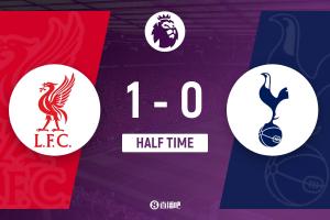 半場結束,利物浦暫1-0熱刺。