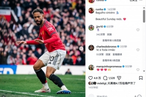 本場比賽庫尼亞打進精彩進球,賽后他也在個人社媒曬出本場進球后沖浪慶祝動作照片,配文寫道:“美好的周日,紅魔球迷們!”