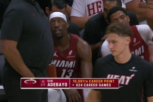 末節還剩5分鐘,阿德巴約上籃命中,本場比賽個人砍下第24分;本場比賽之前是9977分,這樣一來,他的生涯總得分來到10001分,用了624場比賽。
