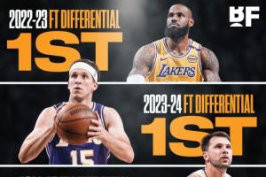 體育資訊03月17日訊 據統計,截至今日賽前,湖人與對手的罰球差近4個賽季第3次領跑聯盟。