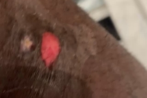 詹姆斯曬出他右腿上一處已經皮膚破損的傷口寫道:“也許是因為那次那次年度最佳撲球!好痛啊??!!哈哈!”